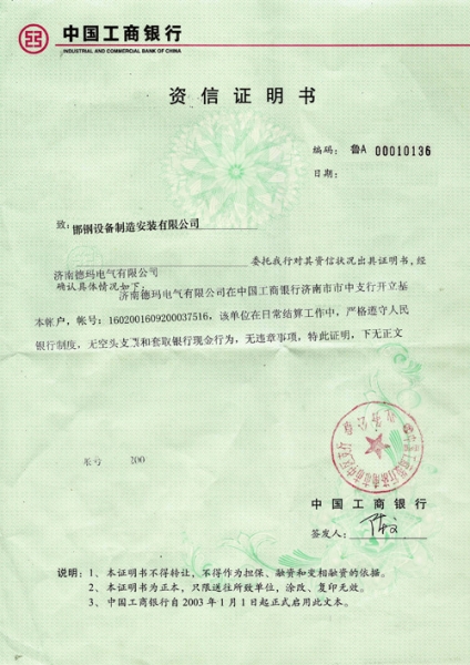 • 工行資信證明書邯鋼工行資信證明書邯鋼